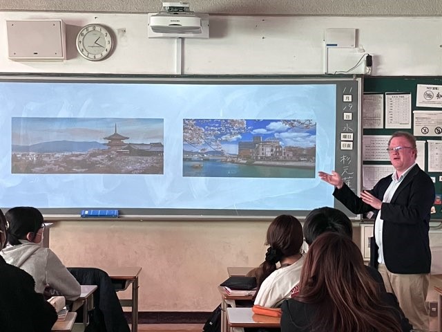 11月19日(水)午後遅くに、韓国の珍島高校の皆さんが本校を訪問しました。放課後の部活動体験をしたい、とのご希望でした。視聴覚教室に集まっていただき、放課後に生徒が迎えに来るのを待ってもらいました。