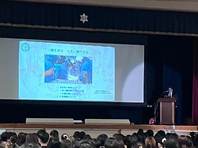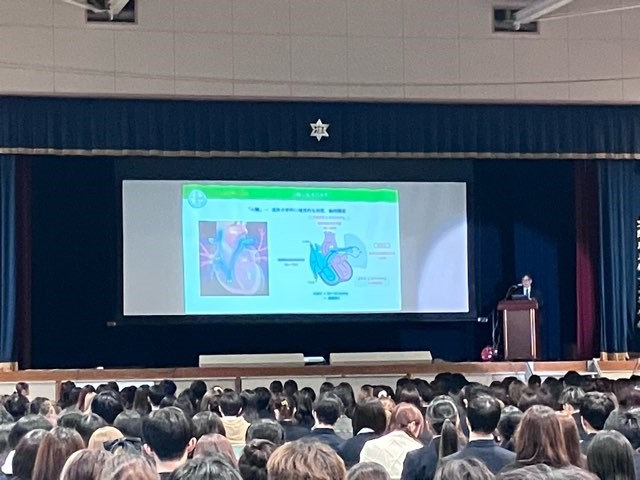 そして心臓外科医という職業の大変さややりがいについてわかりやすく説明していただきました。3Dプリンターによる心臓の模型も持ってきていただきました。実物大で、内部の血管まで再現した非常に精巧なものです(進路指導室にあります)。