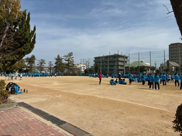 この日、1年生は東グラウンド、2年生は体育館で学年行事を行いました。自治会が企画・運営して、当日の進行も行い、教員はサポートに回ります。心配していた雨も降らず、体操服に着替えた生徒たちは歓声をあげてさまざまなメニューを楽しんでいました。