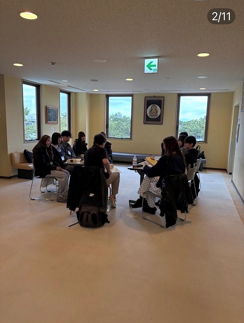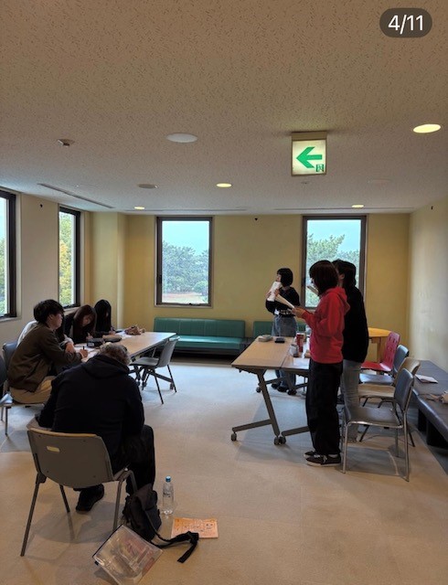 雨模様の中、初日の活動の様子です。宿舎内ではさまざまな活動が行われています。各グループにNETの皆さんがリーダーとなって進行、助言をしてくださいます。