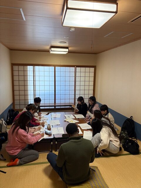3月4日(水)、英語合宿2日めです。寒さが戻ってきましたが、お天気は良くなりました。今日は宿舎の中でも外でも活動がありました。活動のメインであるディベートは何度も練習です。対戦相手もトピックもNETのリーダーも回ごとに変わります。なかなかの緊張感です。