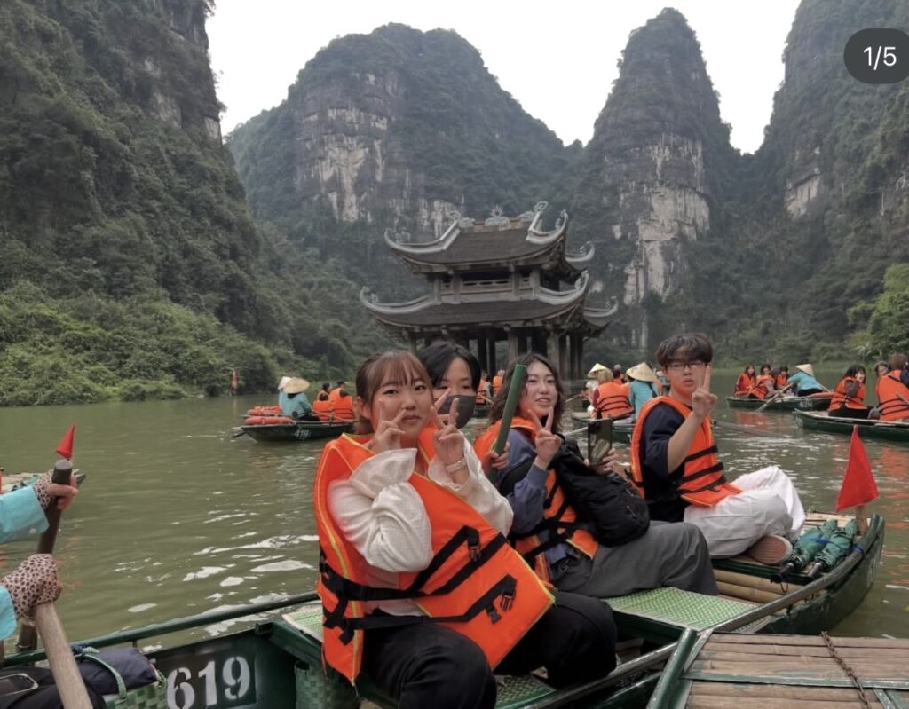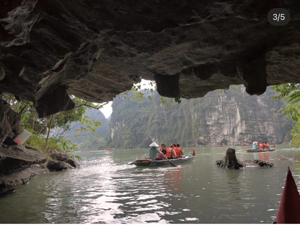 その後、世界遺産のチャンアン。ここは映画「キングコング」の撮影場所にもなっており、洞窟の中を頭スレスレで潜り抜けたりとなかなかスリリングな手漕ぎボートでのクルージングでした。